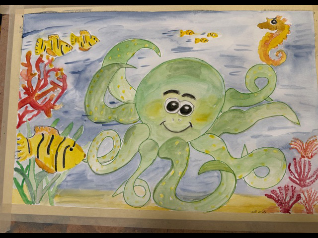 Octopus Under The Sea. (Water color)