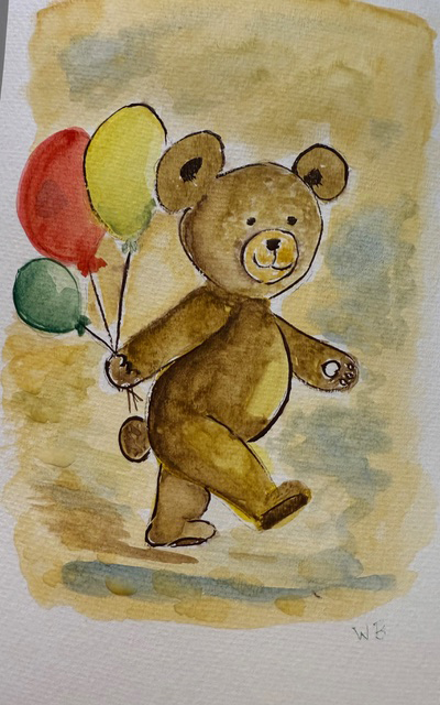 Teddy Bear on a Walk (Water color)